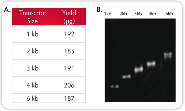 • 高產:從1μg DNA模板生產超過180μg RNA;